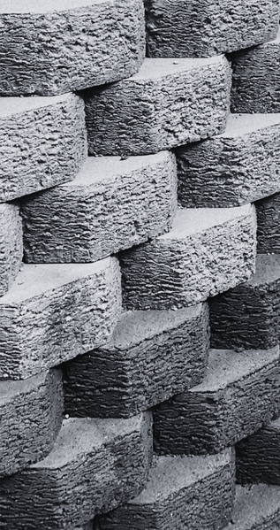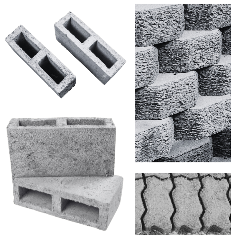 Eco-friendly concrete blocks, bricks, pavers, and retaining wall blocks composed of stabilised fibrous material, saving 33% in cement.